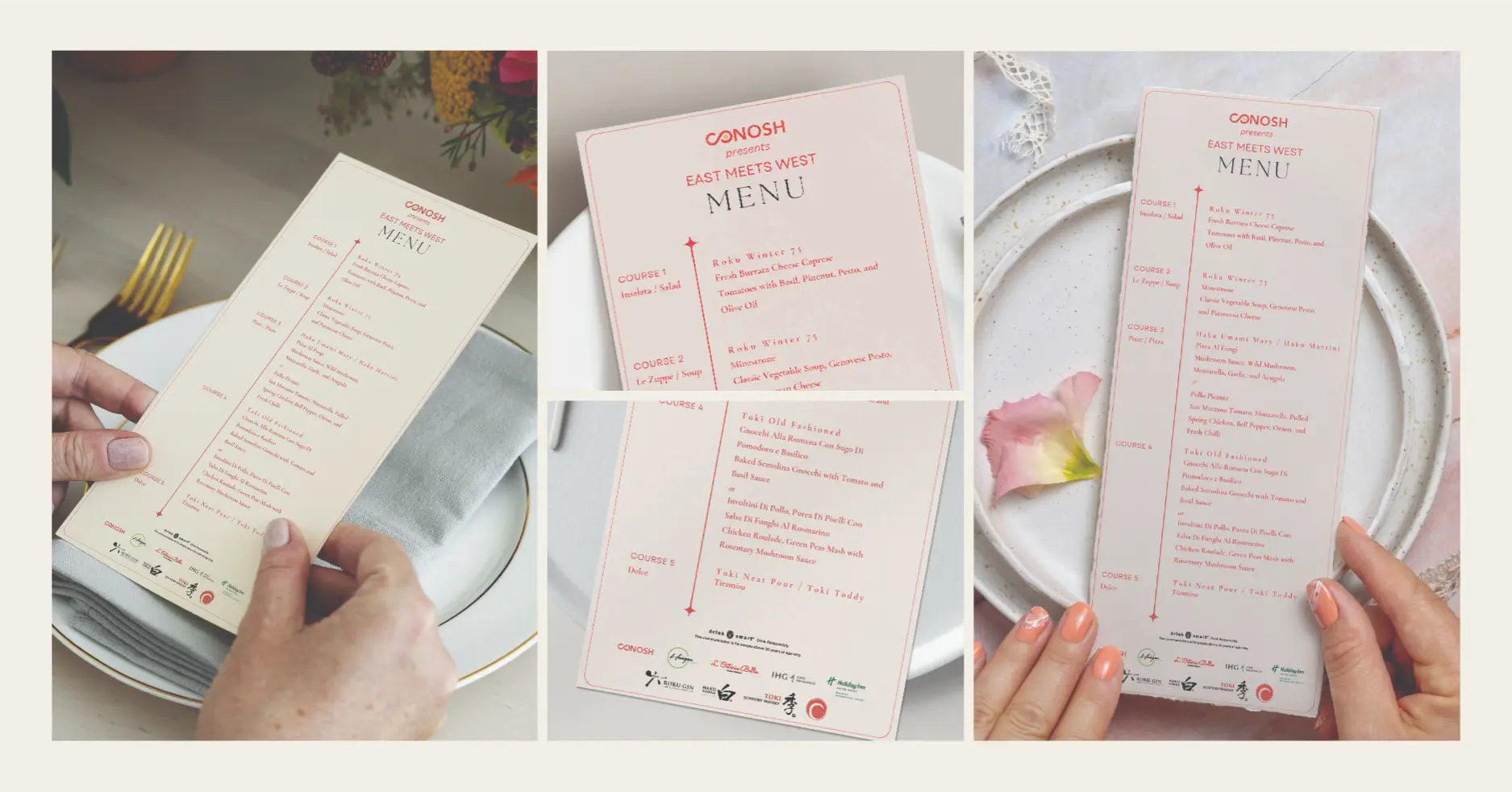 This design balances minimalist editorial layouts with warm, organic textures to mirror the sophisticated blend of cultures featured in the multi-course menu.